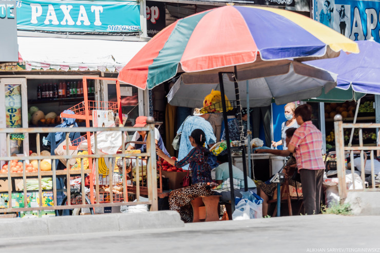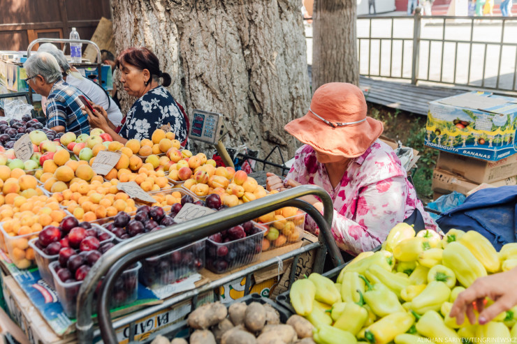 Из самого тихого места днем мы перебазируемся в самое шумное - местный базар. Интересуемся, сколько стоит тут транспорт. На автобусе - 120 тенге, а вот таксисты, не моргнув глазом, предлагают отвезти за тысячу.