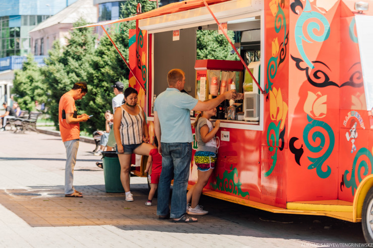 Дальше мы выходим на местный Арбат, это улица имени Биржан-сала. Движение автомобилей здесь перекрыто.