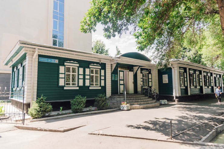 Дальше мы запечатлели самые старые объекты в городе. Вот, например, здание, в котором находится областной литературный музей имени Жансугурова, было построено в 1907 году, находится под защитой государства.