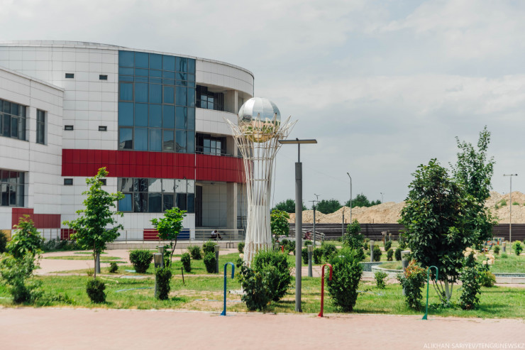 Мы идем дальше и замечаем, что здесь даже есть свой "Байтерек", он находится рядом с Дворцом школьников.