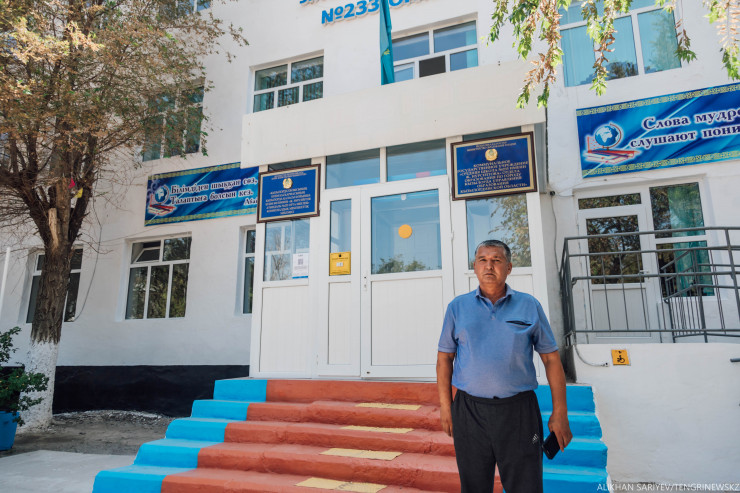 Мы с любопытством заглянули и сюда. В школе нам встретился учитель физкультуры Талгат Кузембаев. Он когда-то здесь учился в одно время с Батыром, у них разница в возрасте три года.