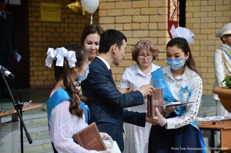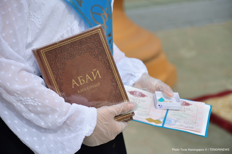 Вместе с аттестатами школьникам вручили книги "Абайдың қара сөздері" (Слова назидания Абая).