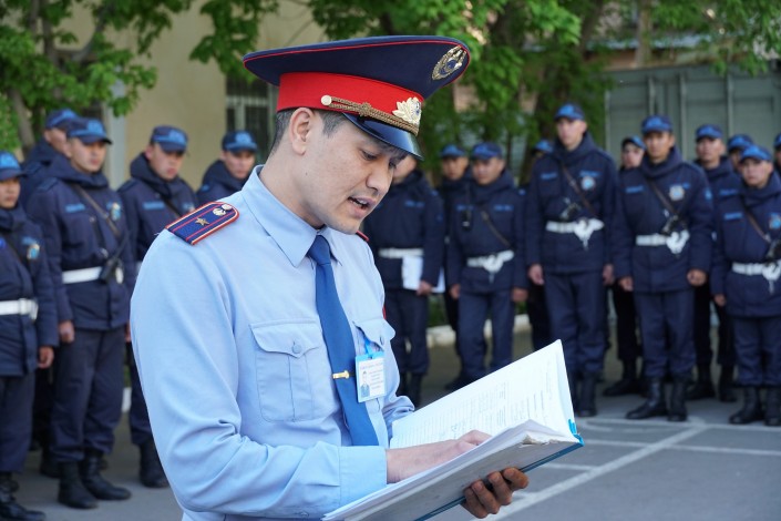 Старший лейтенант Асхат Байдраков служит здесь уже давно. Сегодня он выполняет обязанности дежурного по войсковым нарядам района Сарыарка. Это значит, что он должен объезжать и проверять все маршруты патрульных, кроме того, старшие нарядов незамедлительно докладывают ему о каждом происшествии на территории района, поэтому "экскурсию" нам будет проводить именно он.