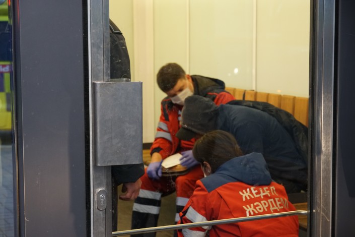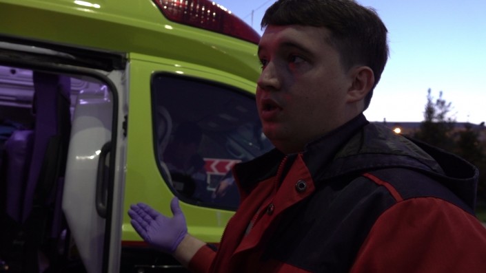 Мужчина затруднился внятно объяснить причину, по которой он оказался на остановке. Алкоголем от него не пахло, и поэтому старший наряда вызывает скорую помощь.