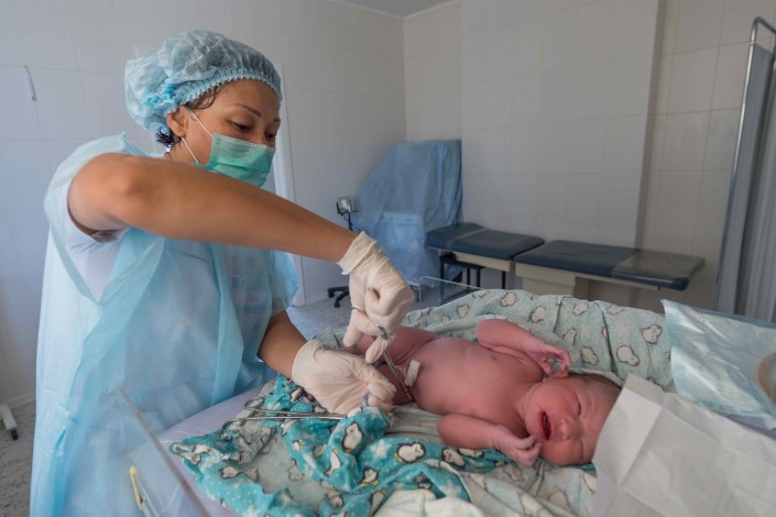 И вот в руках Актолкын маленький живой пищащий комок. Это - девочка.