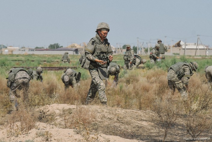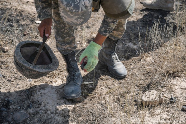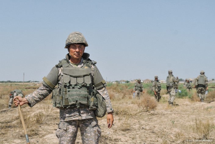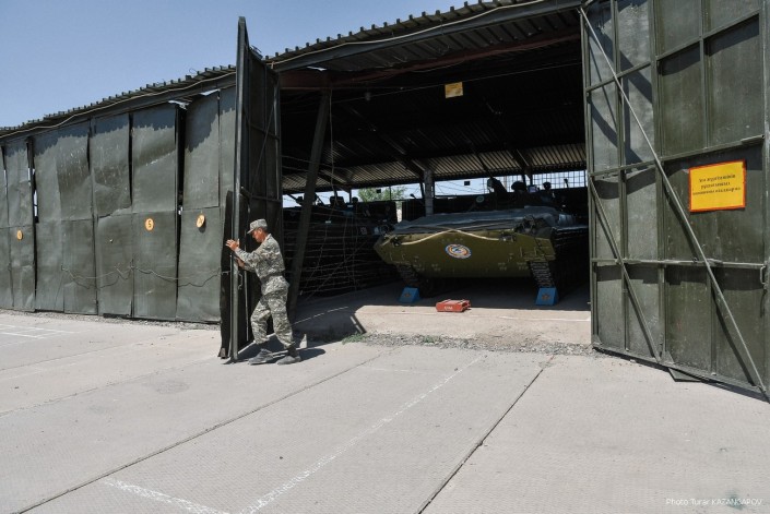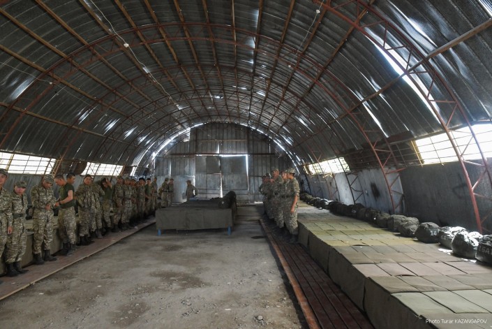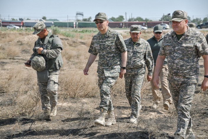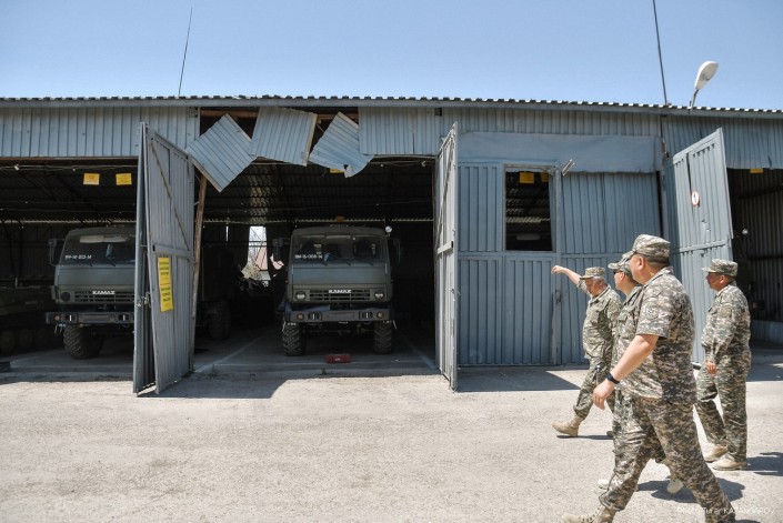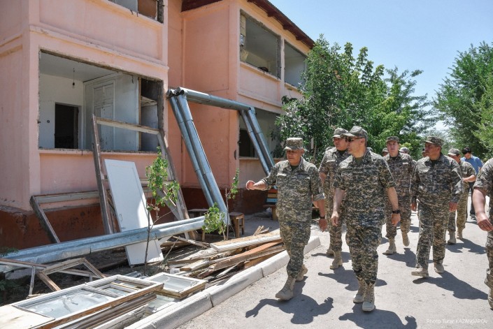 Министр обороны Нурлан Ермекбаев провел обход территории, проверил работу саперов и отправился в в административную половину воинской части.