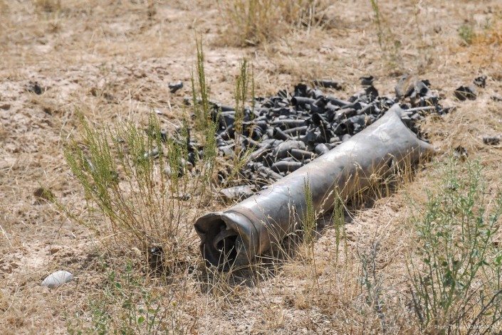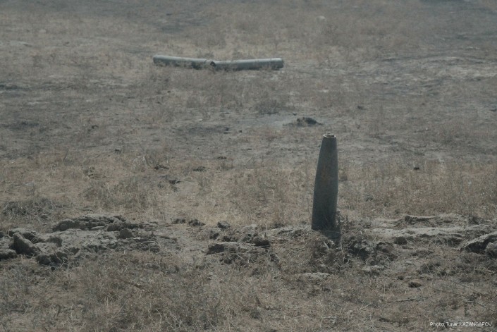 Осколки снарядов разбросаны по степи.