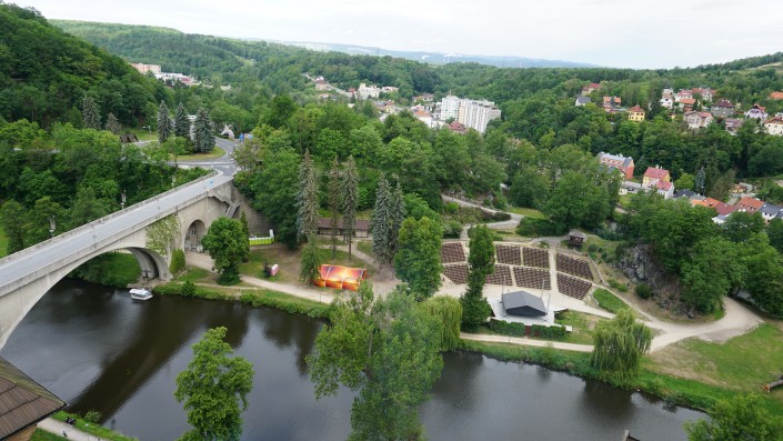 Отсюда же из замка открывается прекрасный вид на каменный мост.