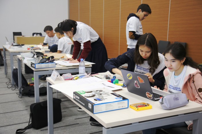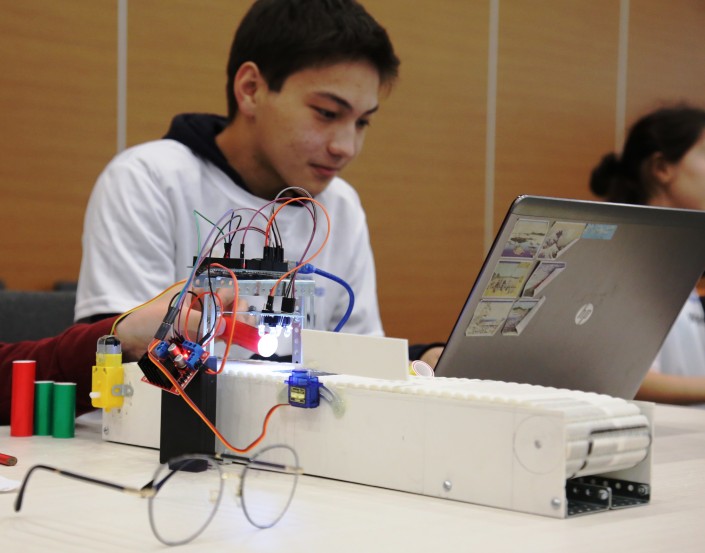 10 команд, состоящих из учеников старших классов из столицы и Караганды, должны были проявить смекалку и находчивость, все свои знания и навыки в робототехнике и за несколько часов сконструировать сортировочный конвейер.