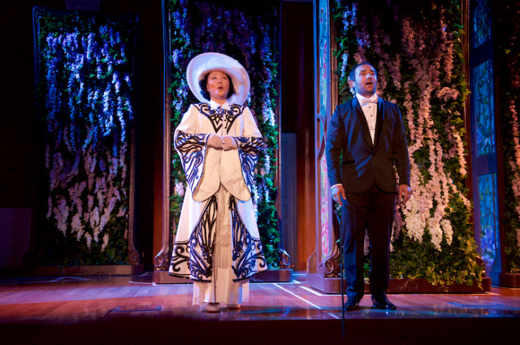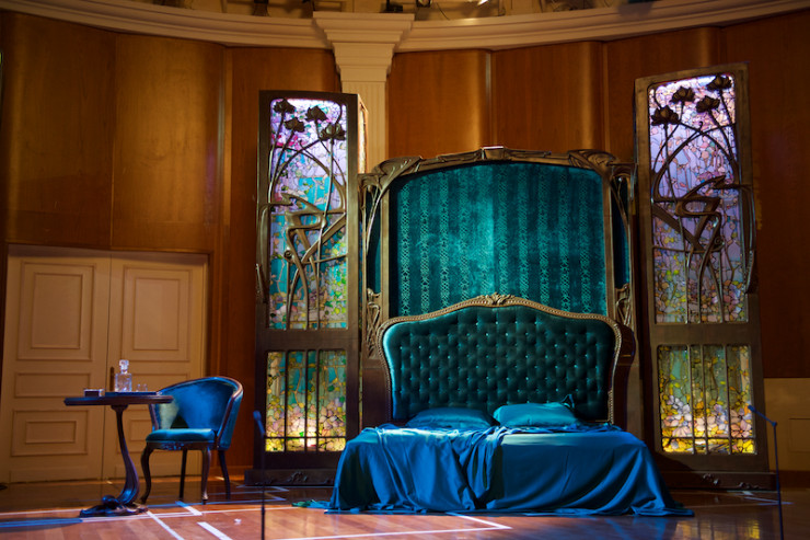 Сценографию и костюмы воплощала в жизнь известный итальянский художник-сценограф Манана Гуниа. Все оформление спектакля она выдержала в стиле арт-нуво, или, проще сказать, в стиле модерн. Одна из фишек этого спектакля заключается в том, что витражи живут на сцене самостоятельной жизнью и реагируют на события как живые создания, меняя цвет и освещение, а в последней сцене превращаются в весенний сад.