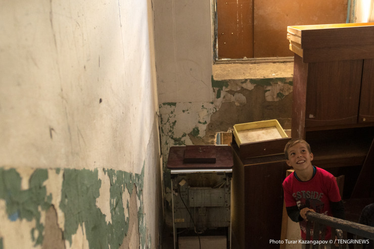 "Живу здесь с девяностых. На весь дом осталось только восемь квартир. Остальные все побросали, когда развал начался - кто в Германию поехал, кто в Россию. Теперь все продувается. Своими силами, что можем, забиваем - где двери, где какие-то картонки, фанерки", - рассказывает жительница.