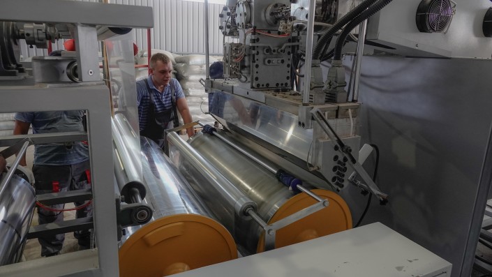 Сегодня Qazaq Recycling производит не только гранулы: в отдельном цеху здесь стоят станки, переплавляющие два вида сырья, полиэтилен высокого давления (ПВД) и линейный полиэтилен высокого давления (ЛПВД), в стретч-пленку. Упаковка из нее дешевле, всегда будет пользоваться спросом и создает неплохую конкуренцию первичному пластику.