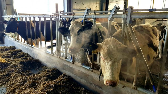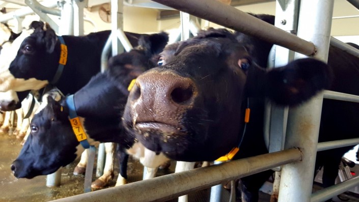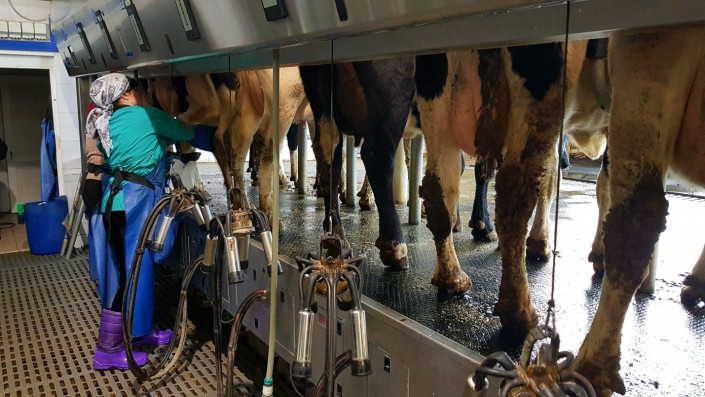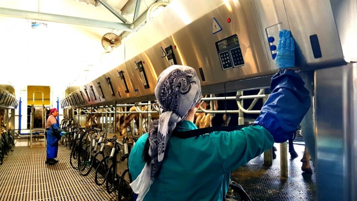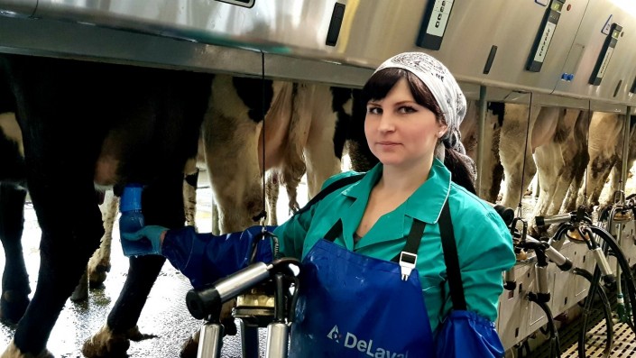 Доят коров три раза в день по два-три часа. Доярки, несмотря на практическую полную автоматизацию процесса, не сидят на месте. Постоянно протирают, стерилизуют и следят за специальными датчиками.