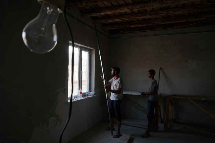Рабочие шутя называют это место пятизвездочным отелем. На топчане строители раскладывали одеяла и матрацы. Ближе к полуночи укладывались спать и просыпались в шесть часов. Ранним утром легче работалось, солнце не так сильно печет.