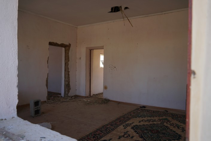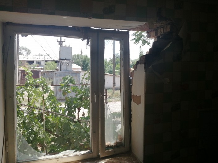 "Его только начинаем восстанавливать. Сначала хозяева требовали, чтобы их дом снесли и построили новый, ссылаясь на то, что он сильно пострадал в результате взрывов. Мы наняли независимую компанию, которая провела оценку, техобследование, и в конце концов пришли к тому, что дом будут ремонтировать. Но хозяева дома стояли на своем и даже не впускали сюда никого", - вспоминает Кажымухан Жумалиев .