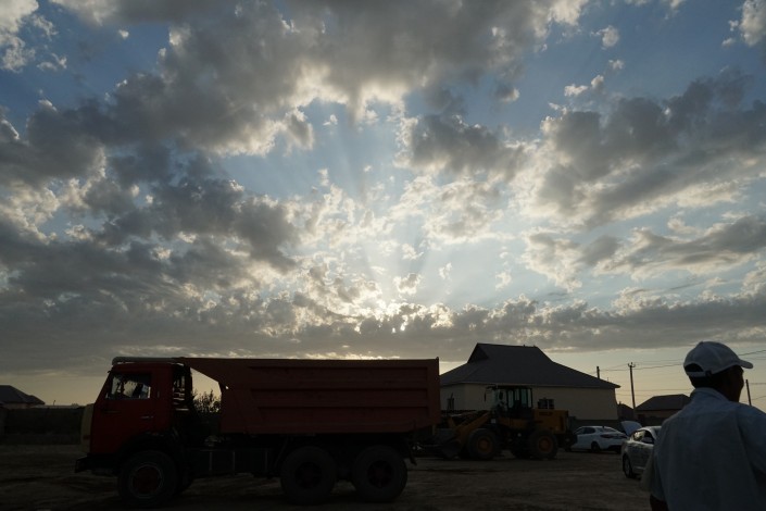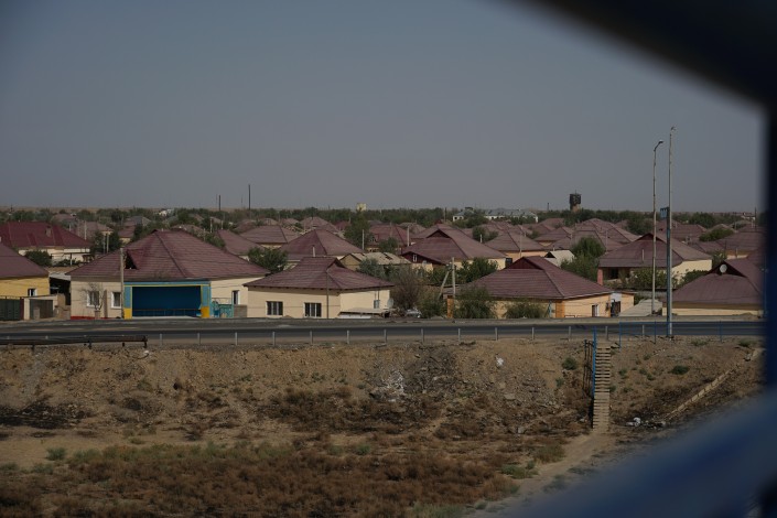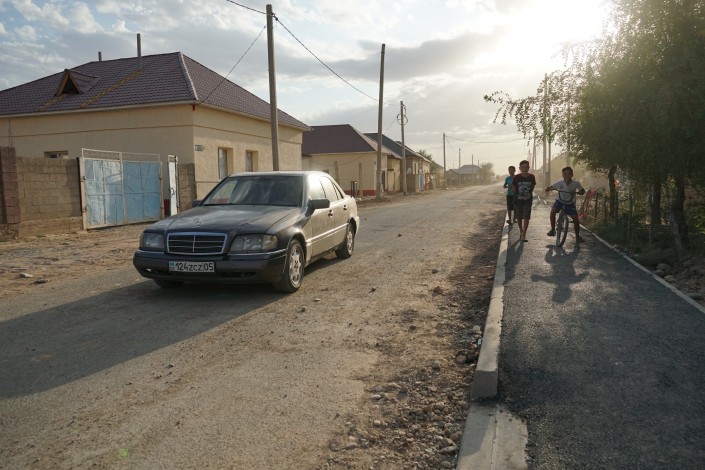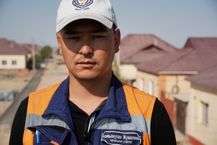 После утренней планерки начальник участка Кажымухан Жумалиев показывает нам отстроенную улицу с моста.