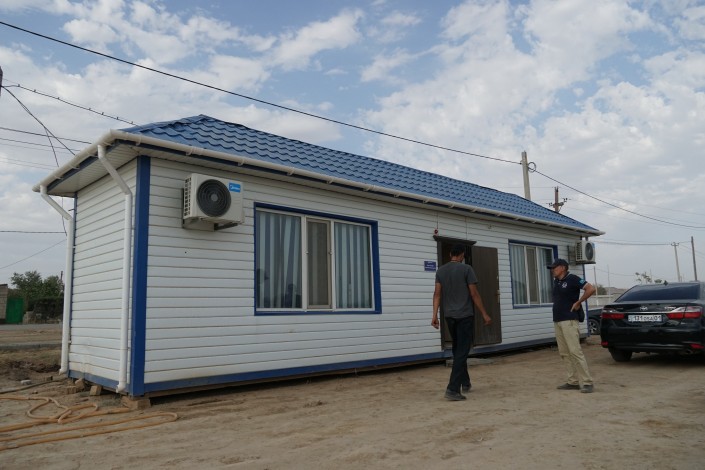 Этот передвижной вагончик строительная компания привезла с собой из Шымкента. Каждое утро сюда на планерку собираются мастера и прорабы. После разнарядки они расходятся по своим объектам.