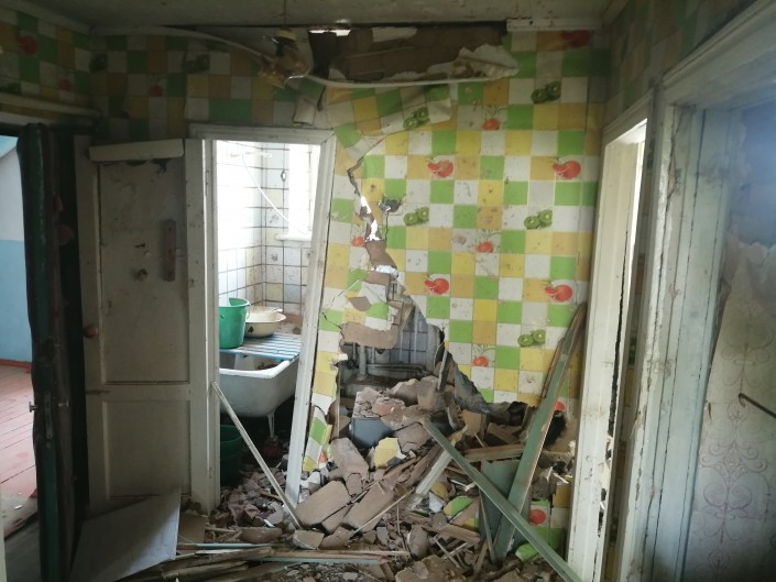Один из снарядов залетел в квартиру Антонины Ивановны через балкон, пробил стену в зале, и упал на кухне. Благо ее в тот момент уже не было. Она успела выбежать из дома.