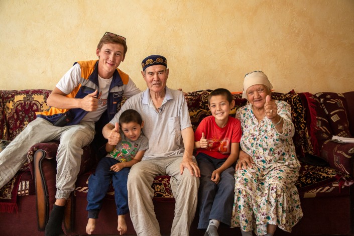 Местные жители, при виде съемочной группы на улице, интересуются, откуда мы. Дети строят рожицы перед камерой. Шестиклассник Диас Ермекбай захотел сказать спасибо своему учителю английского, который спас его во время взрывов.