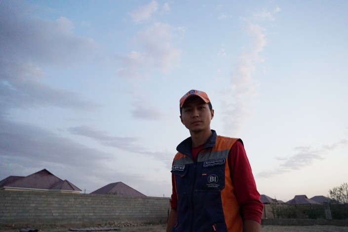 Прошло два месяца... Аслан все еще в Арыси. Он показывает нам участок, который за ним закрепили. Молодой человек рассказывает, что является специалистом по инженерным сетям. Но в Арыси ему доверили вести контроль за общестроительными работами.