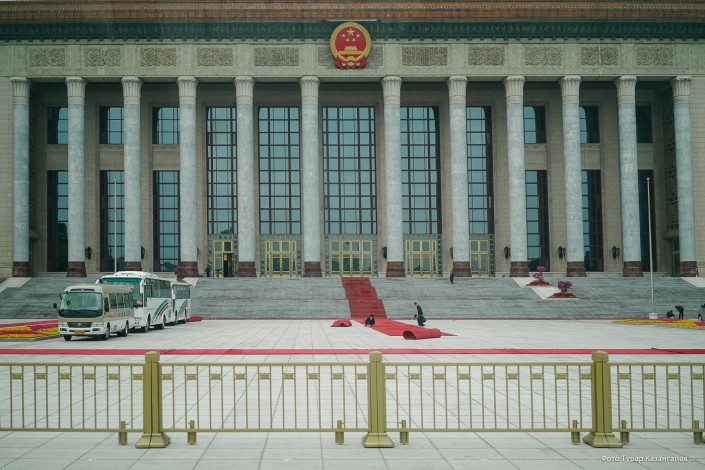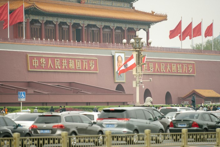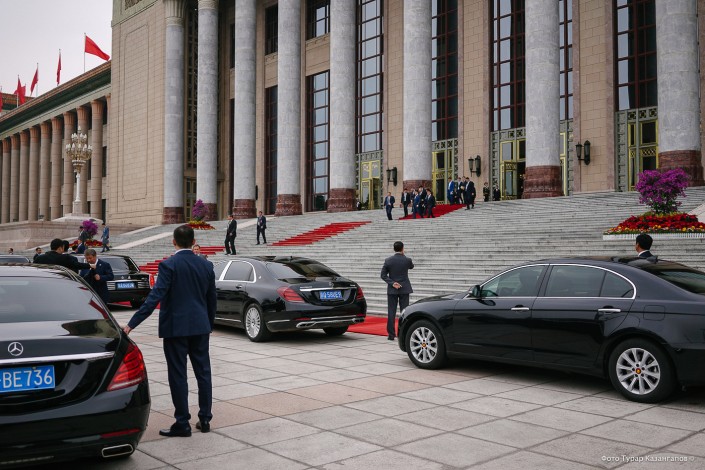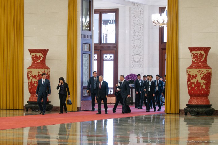 Для двусторонней встречи Назарбаева и Си Цзиньпина выбрали Дом народных собраний в центре города. Улицы на сей раз не перекрывали, так что многочисленные посетители главной площади столицы Поднебесной могли открыто наблюдать за приездом высоких гостей.