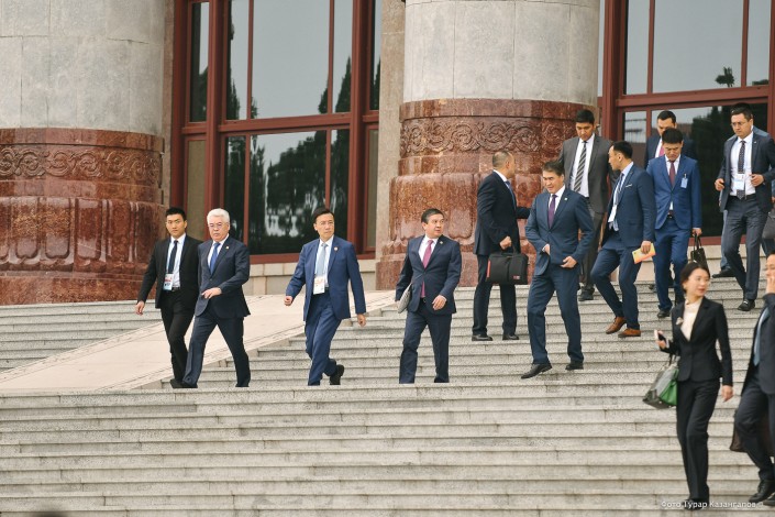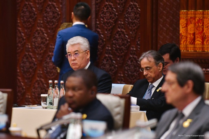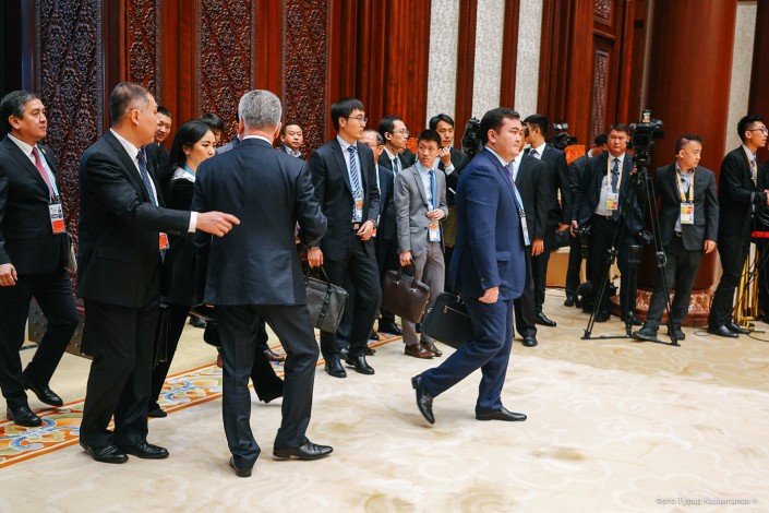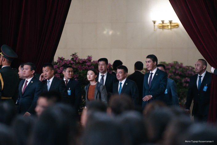 Сначала в зал зашли представители стран-участниц форума. В казахстанскую делегацию вошли директор Фонда Первого Президента Асет Исекешев, министр иностранных дел Бейбут Атамкулов, заместитель премьер-министра Женис Касымбек, председатель "Самрук-Казына" Ахметжан Есимов и другие.