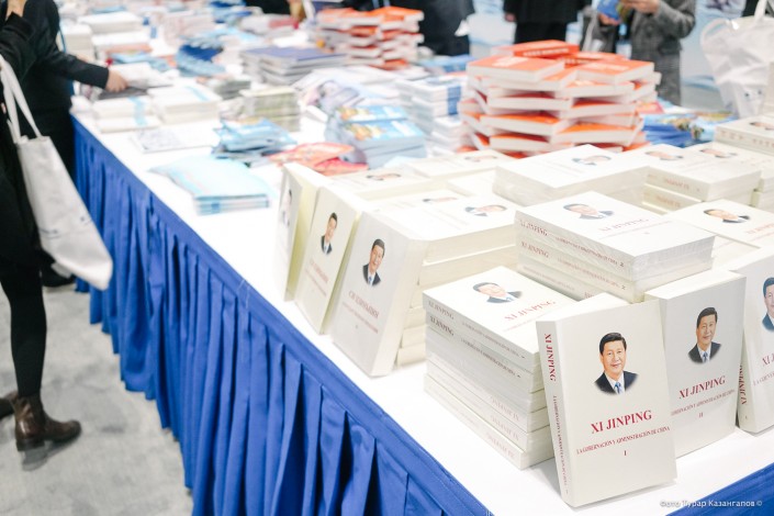 Там же раздавали книги о председателе КНР Си Цзиньпине на трех языках - китайском, английском и русском. История его политических решений заняла три тома.