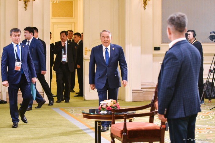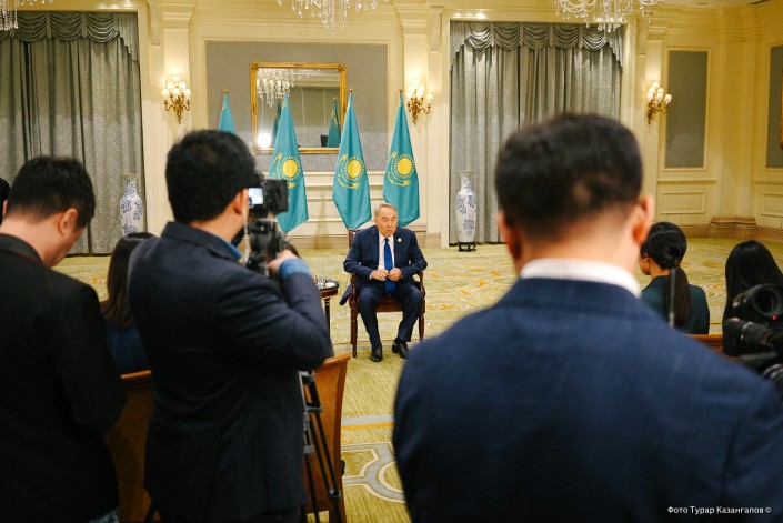 После выступления у китайских журналистов появилась возможность записать интервью с Назарбаевым.