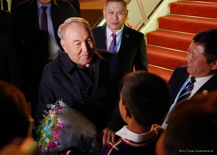 В Пекине Первого Президента Казахстана поздним вечером встречали высокопоставленные китайские чиновники и дети с цветами. Назарбаев не скрывал улыбку и даже после пятичасового перелета выглядел бодрым и энергичным.