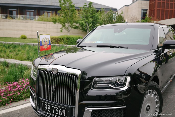 А это машина Путина. Он ездил на автомобиле российского проекта "Кортеж" под названием "Аурус Сенат".