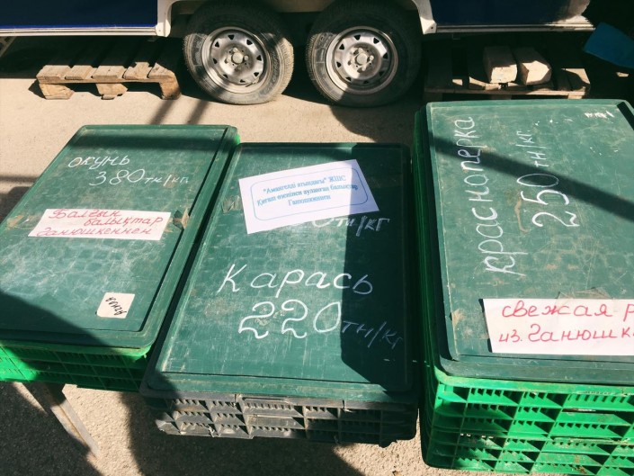 На улицах Атырау в специальных торговых точках можно встретить большой ассортимент рыбы.