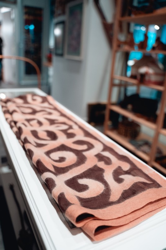 В туристском хабе Visit Almaty представлены шарфы и платки ручной работы.