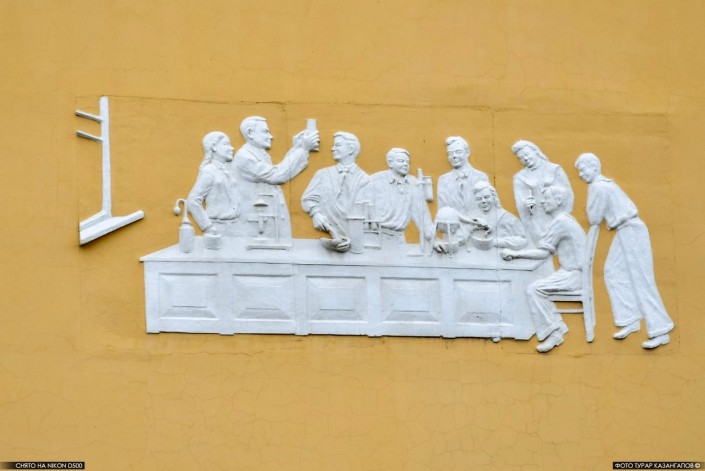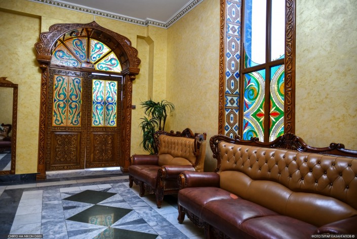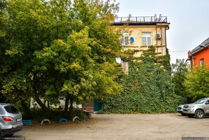 Мы заходим в дверь с вывеской "Медресе" и поднимаемся на второй этаж. Здесь находится квартира Бориса Нурдаулетовича.