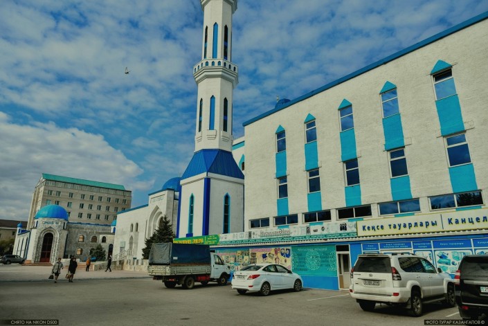 Глядя на комплекс "Нурдаулет", не сразу можно понять, что это - мечеть или торговый дом. Эти два объекта построены как бы впритык друг к другу, и невольно возникает вопрос: а не сообщаются ли они?