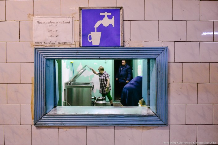 Ближе к вечеру очередная смена готовила еду для бастующих. На кухне заваривали горячий чай и тут же разливали по флягам.