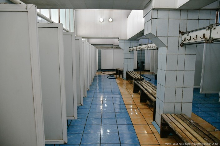 Потом шахтеры в раздевалке переодеваются.