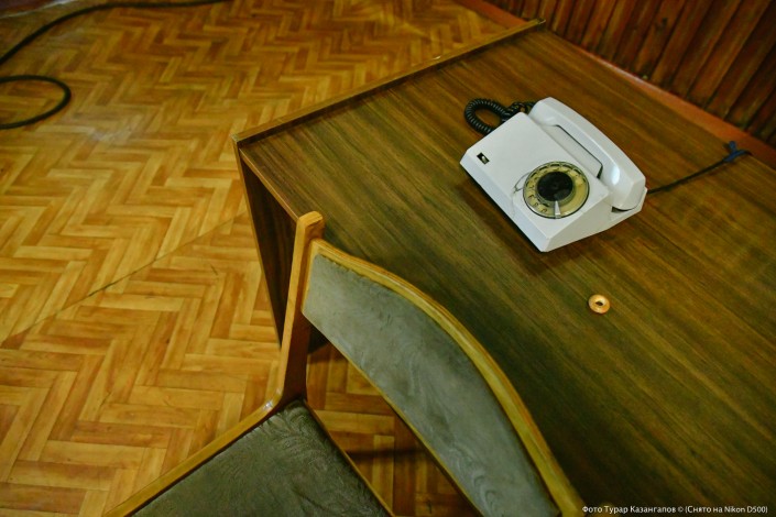 Шахтеры окружают нас и за считанные минуты мы оказываемся в самом здании. Первого, кого мы увидели в актовом зале - уставшего шахтера, дежурившего возле стационарного телефона. Уже потом нам станет ясно, что этот советский аппарат - самая ценная вещь в эти дни. Но об этом немного позже.