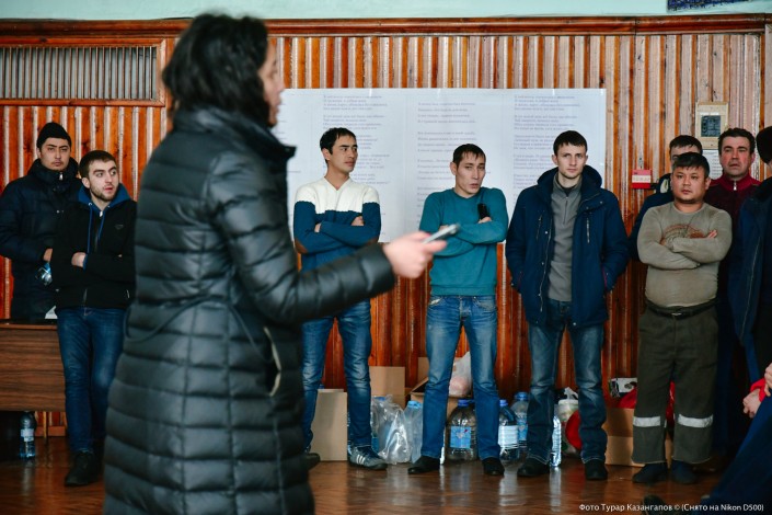 Утро возле ворот шахты "Казахстанская". Идет четвертый и, как позже выяснится, последний день забастовки. К нам навстречу выходят несколько десятков шахтеров. Мужчины окружают нас и заводят в здание. Пытаюсь в этой толпе не потерять глазами своего фотографа. Через несколько минут мы уже в актовом зале и на нас смотрят глаза двухсот человек. Мне в руки дают микрофон. Тишина. Нужно что-то говорить. Мне кажется, что мой голос дрожит. В голове только одна мысль: "Не ляпнуть бы чего-нибудь лишнего, не усугубить бы ситуацию". "Извините за глупый вопрос, но расскажите, пожалуйста, про свои тормозки...", - в итоге произношу я. По залу проносится волна смеха. Суровые, но спокойные лица мужчин расплываются в улыбках. А дальше - душевные беседы, анекдоты про тещ и горячий шахтерский чай. Корреспондент Tengrinews Айгерим Абилмажитова и фотограф Турар Казангапов о дне, проведенном в стенах бастовавшей шахты.