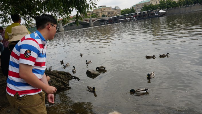 Здесь обычно туристы любят покормить уток.