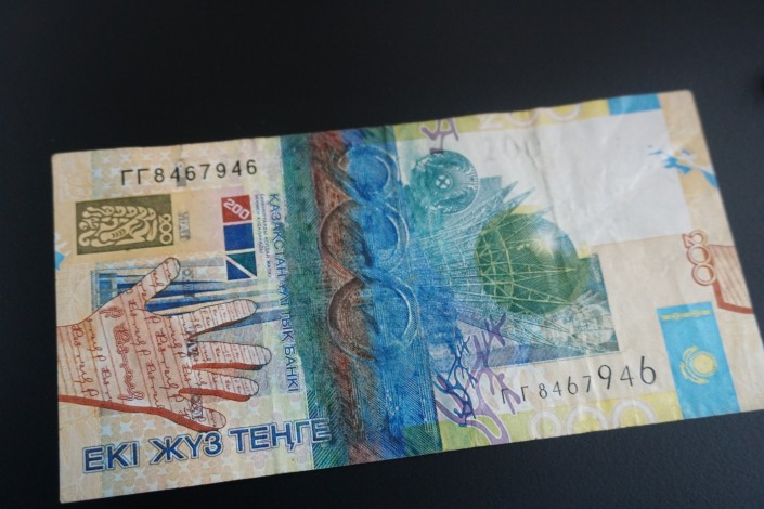 А здесь уже современная банкнота номиналом 200 тенге. Обратите внимание на края купюры.