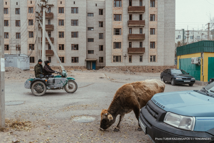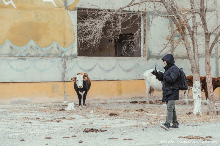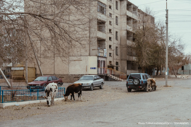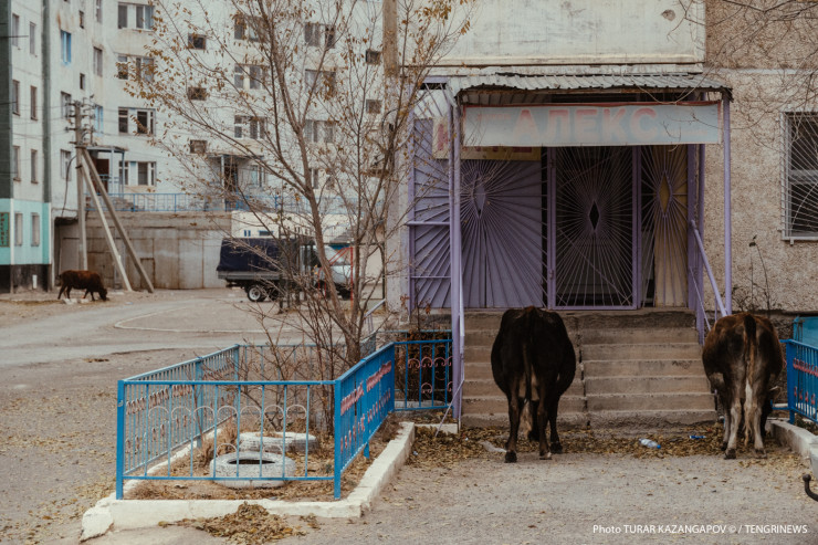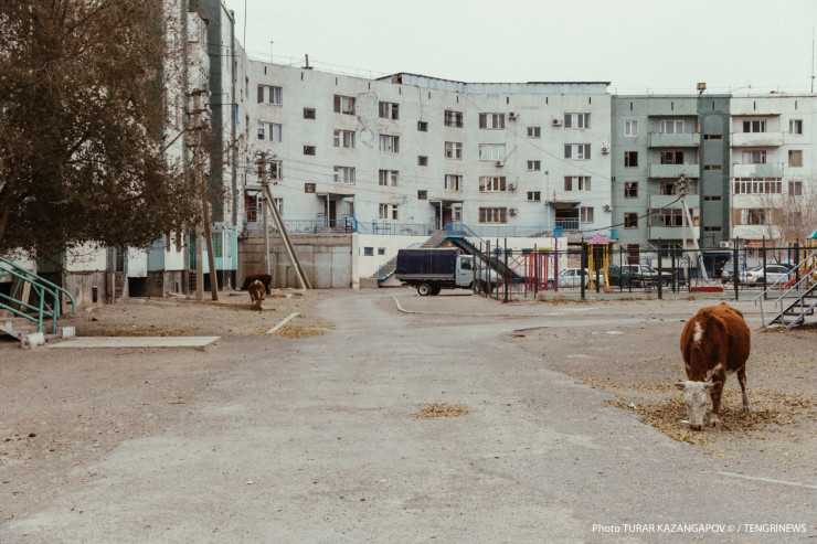 Кажется, что в этом поселке корова - священное животное. Скот здесь пасется везде, порой даже в самых неожиданных местах. Зайдите во дворы пятиэтажек - там коровы, вдоль основных улиц - коровы, возле бывшего детского садика - тоже коровы. Парнокопытные жуют листву и отдыхают, где захотят, и никто им слова не скажет. Таким мы увидели населенный пункт под названием Улькен, находится он в Жамбылском районе Алматинской области.