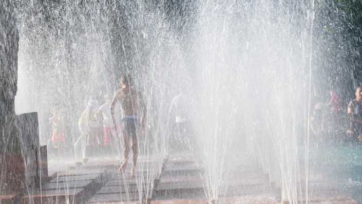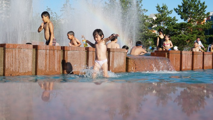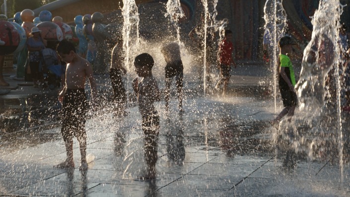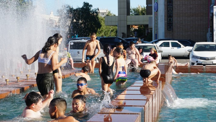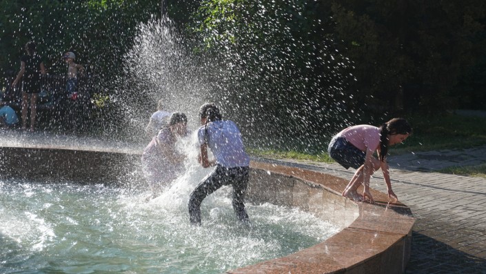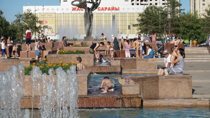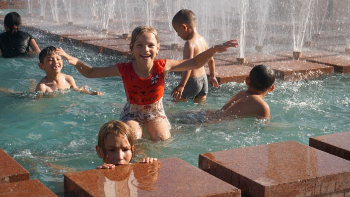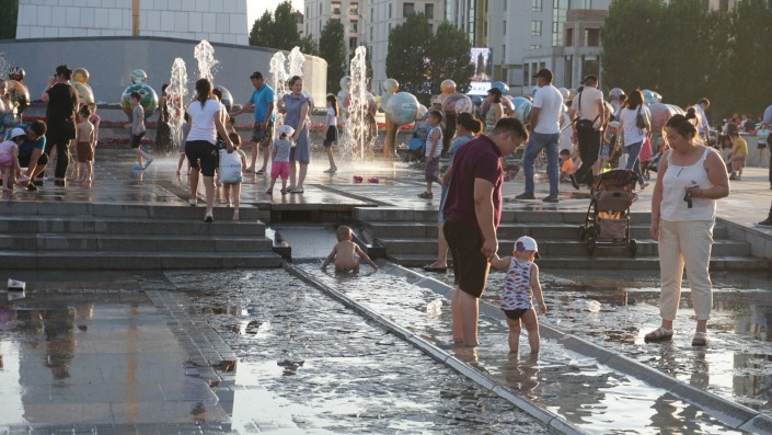 В Нур-Султане из-за жары дети не вылезают из фонтанов