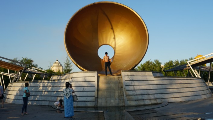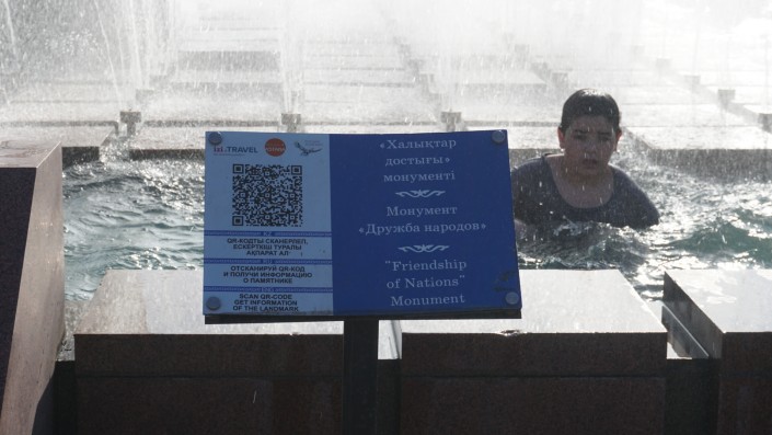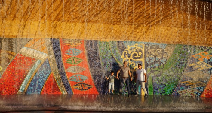 Эти фотографии были сделаны уже вечером, как видно, фонтаны напротив Дворца "Жастар" полны детворы.