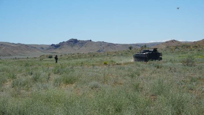 Несколько лет назад подполковник Тажибаев участвовал в миротворческой миссии. Полгода он вместе с казахстанскими военнослужащими находился на территории Ирака. Участвовал в ликвидации последствий по уничтожению взрывоопасных предметов.