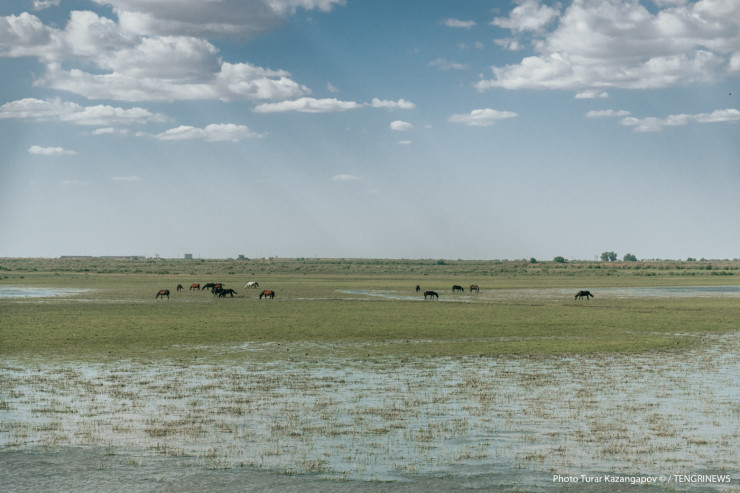 Пески и выжженные земли сменили зеленые оазисы, поля и много-много воды. Это Курмангазинский район.