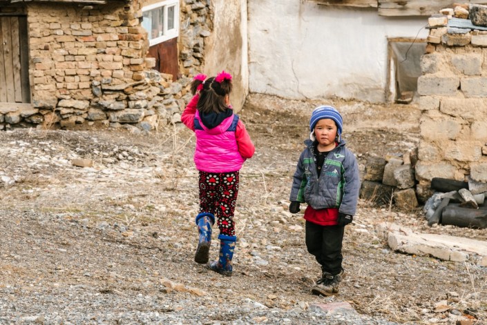 В сопровождении сельской ребятни и, конечно, уже знакомого нам мальчугана на ослике Бахыт показывает нам вход в одну из заброшенных шахт.