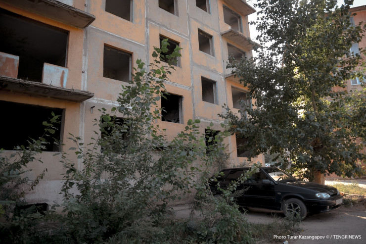 Посреди обычного житикаринского двора, который можно спутать с любым двором из практически любого казахстанского города, есть нежилая пятиэтажка.