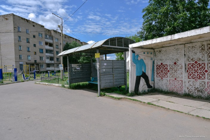 Это фото было сделано за несколько секунд до того, как здесь появилось много людей. Автобусы в этот поселок ходят по расписанию, и едва подъехал маршрут, как в него тут же заскочили все те, кто еще недавно стоял на остановке.