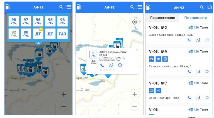 Приложение АЗС.KZ позволяет не только найти ближайшую заправку, но и сравнить цены на топливо, качество сервиса в точках обслуживания, принять участие в составлении рейтинга заправок. Если же водитель отправляется в длительную поездку, то он сможет сформировать оптимальный список заправочных станций на своем пути следования.
