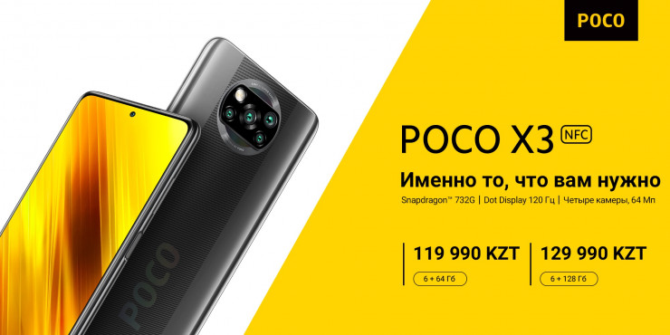Компания Xiaomi успела зарекомендовать себя как производитель качественных и недорогих устройств, завоевавших сердца миллионов. Теперь пришла пора бренда POCO влюблять в себя покупателей. Смартфон доступен в двух цветовых вариантах: "Серый сумрак" и "Синий кобальт". Стоимость версии 6 гигабайтов+64 гигабайта составила 119 990 тенге, вариант с 6 гигабайтов+128 гигабайтов получил цену 129 990 тенге. Приобрести POCO X3 NFC можно у официальных партнеров Xiaomi в Казахстане: Sulpak, "Белый ветер", "Мечта", "Технодом" и Mi.com.kz.
